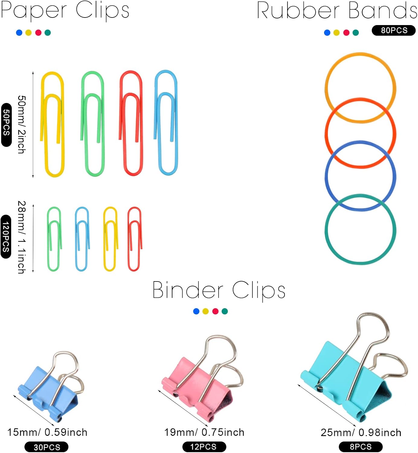 300 Pcs Binder Clips, Rubber Bands